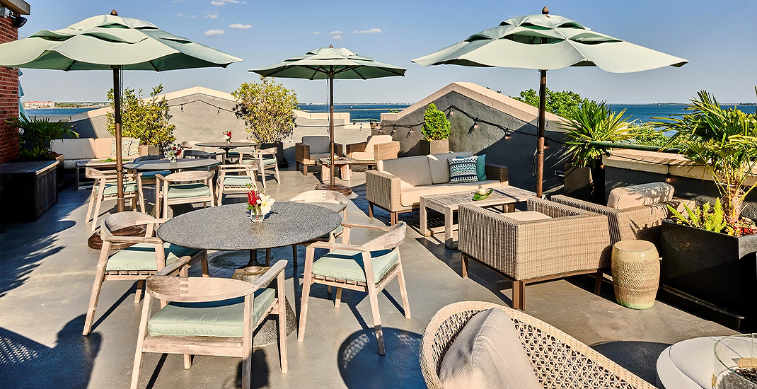 Venture up and away at HarbourView Inn. From morning until evening, enjoy panoramic views of the city of Charleston from the cloistered respite of our Inn’s rooftop terrace.